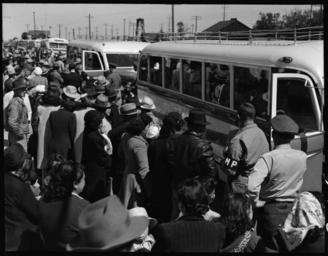 | Keywords: Byron, California. Main Street of small town in the farming district, on morning of evacuation. Si . . . - NARA - 537461.jpg Scope and content The full caption for this photograph reads Byron California Main Street of small town in the farming district on morning of evacuation Six bus loads of residents of Japanese ancestry were checked in and taken to the Assembly center at the Turlock Fairgrounds 65 miles away General notes 537461 Local identifier 210-G-C106 Department of the Interior War Relocation Authority 02/16/1944 - 06/30/1946 NARA-Author Lange Dorothea 1895-1965 Photographer 1372774 <br /> Still Picture Records Section Special Media Archives Services Division NWCS-S National Archives at College Park 8601 Adelphi Road College Park MD 20740-6001 1942-05-02 Record group Record Group 210 Records of the War Relocation Authority 1941 - 1989 Record group ARC 537 Central Photographic File of the War Relocation Authority compiled 1942 - 1945 Series ARC 536000 File unit File unit ARC Variant control numbers NAIL Control Number NWDNS-210-G-C106 Other versions <gallery> File Byron _California _Main_Street_of_small_town_in_the_farming_district _on_morning_of_evacuation _Si_ _ _ _-_NARA_-_537461 tif tif File Byron _California _Main_Street_of_small_town_in_the_farming_district _on_morning_of_evacuation _Si_ _ _ _-_NARA_-_537461 jpg jpg </gallery> NARA-cooperation PD-USGov Dorothea Lange Japanese American internment processing in Byron California Main Streets in California |