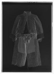 | Keywords: Byxor av brunaktig grå, oskuren sammet som tillhört Karl X Gustav (1622-1660), ca 1650 - Livrustkammaren - 9919-negative.tif Byxorna är av samma grå oskurna sammet som kappan och av rak modell De är gjorda av 4 stycken som förutom sidorna sytts samman fram och bak Mitt framtill är ett c a 30 cm långt sprund som knäpps med en 25 cm lång knäppslå Byxorna är med glesa rynkor fästade vid en 122 cm lång linning - försedd med blott en enda skarv Denna har 6 metallhakar vilka genom fodret på baksidan trätts genom linningen I linningen återstår för närvarande blott de 5 cm långa knapphålen ty de 2 knapparna saknas I knäppslån sitter 8 st knapphål 2 cm långa sydda av 2 trådar av brunt högertvinnat silke med 5 stygn/cm Samma antalknappar finns kvar på motstående sida De är av samma sort som tröjans guld- och silvertrådsklädda knappar Byxorna har i sidsömmarna 17 cm långa sprund för de stora ficksäckarna av skinn Dessa liksom knäppslån är fodrade med samma slags brokad som tröjansfoder <br/><br/>Anmärkningsvärt är att dessa byxor saknar såväl den vanligen förekommande lilla urfickan i linningen på vänster sida framtill som den mindre vertikala fickan på högra framsidan Byxorna är på insidan fodrade med vit linnelärft c a 26x23 tr/cm2 mellanfoder saknas Byxorna är garnerade med en 15 5 cm bred oliksidig knypplad uddspets av guld- och silvertråd samma slag som på kappan Den är påsydd i 2 rader nertill runt benen samt 1rad på varje sida om sidsömmen Som garnering har dessutom bandrosetter sytts fast runt hela midjan delvis på och delvis strax under linningen <br/><br/>Nu finns 20 st sådana rosetter samt något längre ner framtill 3 rosetter på vänster sida och 2 på höger Spår efter ytterligare 2 rosetter finns på linningen och vidare bör det ha funnits en rosett som sprättats bort från höger sida M a o det stämmer bra med 1671 års inventarium som omtalar 28 st silver- guld- och silkesband Rosetterna har knutits i 2 öglor och 2 ändar dels av ett bredare band i silver och mörk olivfärgat silke b 3 3 cm delas av ett smalare band knutet på samma sätt i övervägande vitt och silver b 1 2 cm Bandåtgången kan beräknas till varje rosett av det breda bandet har dragit c a 58 cm varje rosett av det smala bandet har dragit c a 56 cm Om det ursprungligen funnits 28 rosetter har bandåtgången varit 16 24 meter för breda band och 15 68 meter för smala band <br/><br/>Där spetsgarneringen fastsytts har man under sammeten lagt in ett foder av grövre vävnad På höger framsida har byxorna ett urbränt stycke i linnefodret Likaså är hål brända på byxornas insida vid hakarna närmast fickorna Vid något senare tillfälle har man lagt ett veck framtill på varje sida på linningen och 2 hyskor och hakar har sytts fast Byxorna är märkta med bläck baktill N 44 samt har en lapp med inskr 34 Det förra numret från 1789-90 års inventarium det senare till 1821 1850 och 1855 års inv original caption 1647 velvet Färg grå d1 - dräkt - yttermaterial material sammet size cm 122 midjemått LRK Karl X Gustav av Sverige Tre Karlar 1984-1985 Kungligt klädd 1987-1989 Modelejon 2002 place of origin original filename LN_B10721_013601 56375 inventory number LRK 19830 9919 CC0 Byxor av brunaktig grå oskuren sammet som tillhört Karl X Gustav 1622-1660 ca 1650 - Livrustkammaren - 9919 tif <gallery caption Different images of same object > File Byxor av brunaktig grå oskuren sammet som tillhört Karl X Gustav 1622-1660 ca 1650 - Livrustkammaren - 18481 tif File Byxor av brunaktig grå oskuren sammet som tillhört Karl X Gustav 1622-1660 ca 1650 - Livrustkammaren - 78404 tif File Byxor av brunaktig grå oskuren sammet som tillhört Karl X Gustav 1622-1660 ca 1650 - Livrustkammaren - 1359 tif </gallery> |