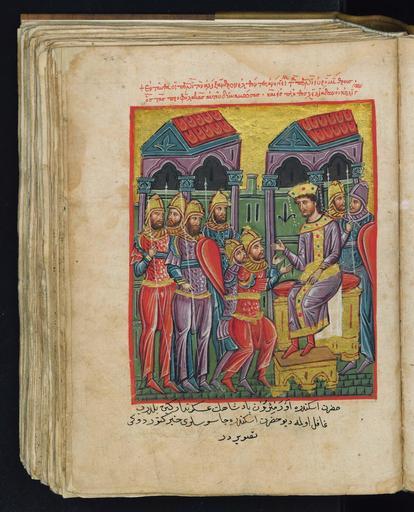 | Keywords: Byzantine Alexander Romance Vraka.JPG en A fourteenth-century miniature Greek manuscript depicting scenes from the life of Alexander the Great depicted entirely in Byzantine fashion of the period Late Byzantine period 1204-1453 Alexander Romance in S Giorgio dei Greci in Venice el Οι στρατηγοί αναφέρουν ότι ο Ευρυμίθρης λησιάζει και ο Αλέξανδρος διατάζει να ενισχυθούν οι ροφυλακές image http //194 177 217 107/gr/showpic asp picpath 9999_min_01_174v curtable miniatures currecord 220 vorder 1 vmode miniat Miniature of the Alexander Romance a fourteenth-century book<br/> Website http //www istitutoellenico org/english/pubblicazioni/index5 html Hellenic Institute of Byzantine and Post-Byzantine Studies in Venice<br/> Creator Unknown 1204-1453 PD-old-100 Byzantine Alexander Romance Venice Vraka Military of the Byzantine Empire |