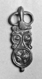 | Keywords: Byzantine - Belt Buckle - Walters 542332.jpg On this bronze buckle one of many made for less wealthy patrons the portrait of a beardless Christ was thought to protect the wearer from harm Belt buckles were in use in the Byzantine Empire by the 5th century when the Roman toga began to be replaced by trousers as part of the cultural influence of the northern migratory peoples late 6th century-7th century Late Antique bronze cm 2 7 7 1 1 4 accession number 54 2332 3499 Joseph Brummer Paris and New York by purchase Sale New York Parke-Bernet April 20 1949 no 258 Walters Art Museum 1949 by purchase Museum purchase 1949 Jewelry - Ancient to Modern The Walters Art Gallery Baltimore 1979-1980 place of origin Athens Greece Walters Art Museum license Byzantine and Early Russian art in the Walters Art Museum Jewellery in the Walters Art Museum Byzantine belts Media contributed by the Walters Art Museum needs category review |