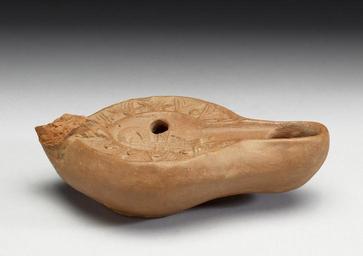| Keywords: Byzantine - Chrismon Lamp - Walters 482569 - Side A.jpg This terracotta lamp displays the superimposed Greek letters Chi X and Rho P the monogram of Christ These initials form a symbol that serves as an invocation or appeal for his divine protection People used clay oil lamps to light their homes and when decorated with Christian symbols to refer to Christ as the symbolic light of the world century 4 Late Antique terracotta cm 3 3 10 6 6 5 accession number 48 2569 32928 Pete N Nickolas Helios Old World Antiquities Westminster Maryland by purchase Walters Art Museum 1987 by purchase Museum purchase 1987 place of origin North Africa Walters Art Museum license Ancient Roman art in the Walters Art Museum Byzantine and Early Russian art in the Walters Art Museum Decorative and applied arts of Byzantine Empire Media contributed by the Walters Art Museum needs category review Ancient Roman oil lamps in the United States |