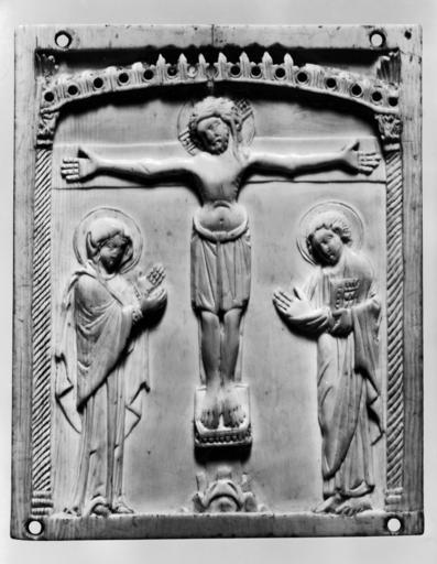 | Keywords: Byzantine - Crucifixion - Walters 71113.jpg This plaque depicts the Crucifixion with the mourning Virgin and Saint John the Evangelist Apart from the inclusion of a canopy supported by columns this ivory also differs from its contemporaries in its style; here the artist has carved his figures with much rounder faces and softer folds of drapery late Other date century 10 Medieval ivory elephant cm 13 5 10 6 0 6 accession number 71 113 1553 Henry Walters city Baltimore Walters Art Museum Henry Walters Acquired by Henry Walters 1924 Early Christian and Byzantine Art Baltimore Museum of Art Baltimore 1947 Five Thousand Years of Faces Bellevue Art Museum Bellevue 1983 Medieval Games of Love and War The Walters Art Gallery Baltimore 1995-1996 Cross References Dumbarton Oaks Washington 2011 place of origin Byzantine Empire Walters Art Museum license Byzantine ivory in the Walters Art Museum Decorative and applied arts of Byzantine Empire Media contributed by the Walters Art Museum needs category review |