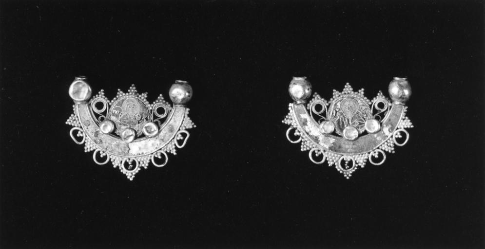 Keywords: Byzantine - Earring with a Bust of the Virgin - Walters 44300.jpg century 10 Medieval cloisonné enamel on gold cm 2 8 3 68 0 47 accession number 44 300 15432 Henri Daguerre Paris date and mode of acquisition unknown Henry Walters city Baltimore Walters Art Museum Henry Walters Acquired by Henry Walters 1926 Jewelry - Ancient to Modern The Walters Art Gallery Baltimore 1979-1980 place of origin Eastern Mediterranean Walters Art Museum license Byzantine silver in the Walters Art Museum Jewellery in the Walters Art Museum Byzantine earrings Media contributed by the Walters Art Museum needs category review |