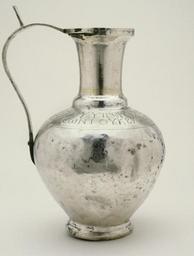 | Keywords: Byzantine - Ewer - Walters 57645.jpg The celebration of the Divine Liturgy is one of the most important ceremonies in the Christian Church This ewer is part of a silver service with Walters 57 634 57 635 57 642 57 644 57 649 57 646 57 650 and 57 638 that is one of only four to survive from the first golden age of Byzantium 6th century Each of the vessels in this service performed a sacred function in the liturgical service Small ewers pitchers and bowls held water for ritual hand-washing This silver service was found in Syria in 1910 in the village of Kurin The Greek form of its name Kaper Koraon is inscribed on several pieces in the treasure including a chalice which reads treasure of the Church of St Sergios of the village of Kaper Koraon Almost all of the vessels record the names of donors who gave pieces from their private dinner services in fulfillment of a vow to gain divine blessing or in prayer for salvation ca 550 Late Antique silver with traces of gilding H at top of handle tip 10 9/16 x W 6 3/16 x D 7 7/8 in 26 9 x 15 7 x 20 cm ; Diam of mout cm 7 5 ; Diam of foot cm 8 1 accession number 57 645 10850 Excavated in Syria 1908-1910 Tawfic Abucasem Hama and Port Said ca 1913 by purchase Joseph Brummer Paris ca 1928 by purchase Henry Walters city Baltimore Walters Art Museum Henry Walters Acquired by Henry Walters 1929 Translation In two lines over the shoulder of the b + Ewer of Saint Sergius prayer of Daniel Sergius Symeonus Bacchus and prayer of Thomas from the village of Kaper Koraon Early Christian and Byzantine Art Baltimore Museum of Art Baltimore 1947 Silver Treasure from Early Byzantium The Walters Art Gallery Baltimore 1986 place of origin Greece Walters Art Museum license Byzantine silver in the Walters Art Museum Decorative and applied arts of Byzantine Empire Media contributed by the Walters Art Museum needs category review |
