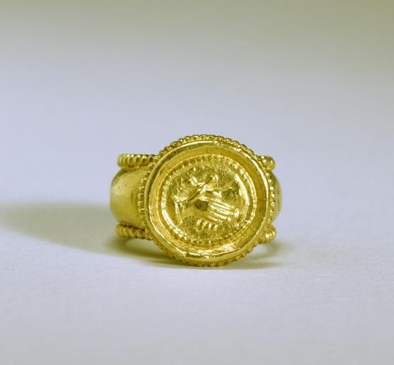 Keywords: Byzantine - Marriage Ring - Walters 571715 - Top.jpg The hoop and circular bezel of this gold ring are edged with beads The motif of the clasped hands signifying love betrothal and marriage was first introduced in the Roman period and remained a popular symbol until the 19th century These rings are also called fede rings named after the Italian term for good faith and belief century 6 Late Antique gold cm 1 6 2 2 2 4 accession number 57 1715 5973 Mrs Sadie A May Baltimore by purchase Walters Art Museum Gift of Mrs Saidie A May 1942 Objects of Adornment Five Thousand Years of Jewelry from the Walters Art Gallery Baltimore Cooper-Hewitt National Design Museum New York; Chrysler Museum of Art Norfolk; Carnegie Museum of Art Pittsburgh; San Antonio Museum of Art San Antonio; Philbrook Museum of Art Tulsa; Honolulu Academy of Arts Honolulu; New Orleans Museum of Art New Orleans; Milwaukee Art Museum Milwaukee; Minneapolis Institute of Arts Minneapolis; Toledo Museum of Art Toledo; The John and Mable Ringling Museum of Art Sarasota 1984-1987 Jewelry from the Walters Art Museum and the Zucker Family Collection The Walters Art Gallery Baltimore 1987 Bedazzled 5 000 Years of Jewelry from the Walters Art Museum Frist Center for the Visual Arts Nashville; The John and Mable Ringling Museum of Art Sarasota; The Walters Art Museum Baltimore 2006-2009 Bedazzled 5 000 Years of Jewelry El Paso Museum of Art El Paso 2010 Early Christian and Byzantine Art Baltimore Museum of Art Baltimore 1947 Jewelry - Ancient to Modern The Walters Art Gallery Baltimore 1979-1980 place of origin Greece Walters Art Museum license Byzantine and Early Russian art in the Walters Art Museum Jewellery in the Walters Art Museum Byzantine rings Media contributed by the Walters Art Museum needs category review Wedding rings Gold rings |