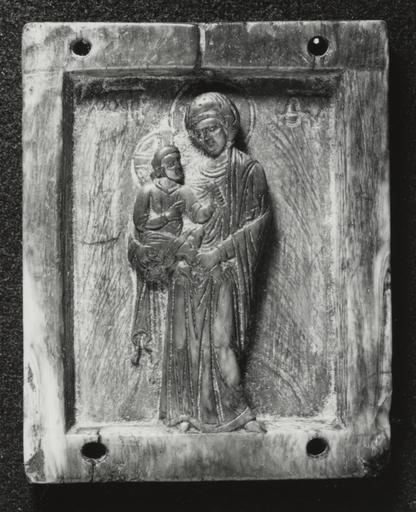 | Keywords: Byzantine - Virgin and Child - Walters 71587.jpg This plaque which may have formed the central panel of a triptych shows the Virgin standing in an elegant pose with her weight on one leg perhaps inspired by the Classical tradition This portrait type of the Virgin who holds the Christ Child in her right arm while grasping his leg with her left hand is called Dexiokratousa Greek for holding with her right hand century 10 Medieval ivory cm 8 6 2 0 9 accession number 71 587 40893 Dikran Kelekian New York and Paris by purchase Henry Walters city Baltimore Walters Art Museum Henry Walters Acquired by Henry Walters 1926 Early Christian and Byzantine Art Baltimore Museum of Art Baltimore 1947 Sonya Clark Loose Strands Tight Knots The Walters Art Museum Baltimore 2008 place of origin Constantinople present-day Istanbul Turkey Walters Art Museum license Byzantine ivory in the Walters Art Museum Decorative and applied arts of Byzantine Empire Media contributed by the Walters Art Museum needs category review Dexiokratusa |