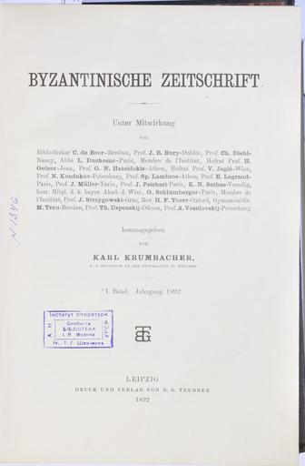 Keywords: Byzantinische Zeitschrift 1477.jpg Byzantinische Zeitschrift Лейпциг 1892 Том I Титульний а куш З особистої бібліотеки І Ф анка 1892 Institution Shevchenko Institute of Literature Digital Collection PD-old-70-1923 1790 books from Germany Franko Personal Library Collections of books in libraries in Ukraine Shevchenko Institute of Literature Uploaded with VicuñaUploader |