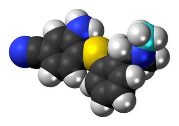 | Keywords: (C-11)DASB molecule spacefill.png Space-filling model of the C-11DASB molecule a compound used in PET scans The radioactive carbon-11 atom is highlighted in cyan C H N S C cyan <sup>11</sup>C Radioactive carbon 2015-01-09 own DS Visualizer Jynto more from this user With radioactive marker ball-and-stick version Without radioactive marker ball-and-stick version Without radioactive marker space-filling version cc-zero Images by Jynto Space-filling models Diphenylsulfids Benzonitriles Dimethylamino compounds Anilines |