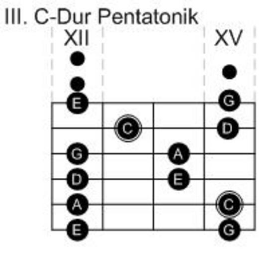 Keywords: C-Dur Pentatonik III.jpg Eigenanfertigung 2005-11-05 own assumed Red Rooster Scales on guitar