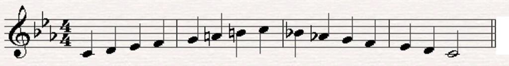 Keywords: C melodic key.png Image of scale C Melodic minor Own 2006-12-14 Aidan Hanrath Released into the Public Domain Musical scales in C