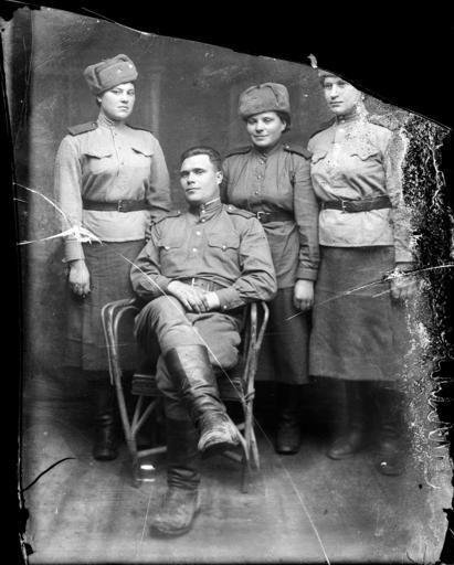 | Keywords: costică acsinte archive costicăacsintearchive 20150301 glass plates glassplates ialomita românia rou ca military camilitary blackandwhite groupshot people monochrome surreal black and white Pe scaun stă un plutonier sovietic iar în picioare trei femei soldat. Toţi poartă uniformă model 1943. Pe scaun stă un plutonier sovietic iar în picioare trei femei soldat. Toţi poartă uniformă model 1943. | ||||