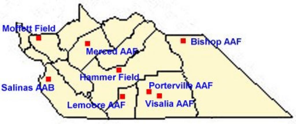 | Keywords: Ca-wwiiaflds-cent.jpg  Map of World War II Airfields in California Central region 1940s self-made from PD basemap of California Counties 2008-04-17 Bwmoll3 Maps of the history of California World War II Military facilities in California United States Air Force bases Airports in California World War II California in the 1940s World War II home front in the United States California |