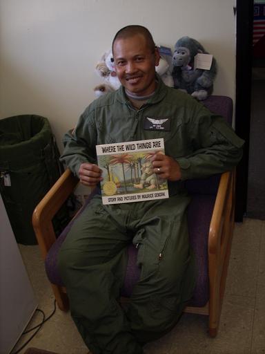 | Keywords: CAB Soldiers, Families unite through reading DVIDS108532.jpg en Capt Mohamad Umar battalion flight physicians assistant Headquarters and Headquarters Company 3rd Battalion 4th Aviation Regiment Combat Avn Brigade 4th Infantry Division Multi-National Division - Baghdad from Phnom Penh Cambodia shows off the book he read to his three children Where the Wild Things Are on Camp Taji Aug 12 2008 2008-08-12 https //www dvidshub net/image/108532 108532 2008-08-14 09 17 TAJI IQ PD-USGov Camp Taji Images from DoD uploaded by Fæ |