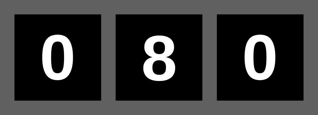 Keywords: Cab Speed 080E.svg Image of TGV cab signal 080E 80kph Own work 2006-03-18 own assumed Madcap Transmission voie-machine 80 number