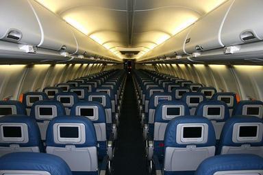 Keywords: cabin aircraft luggage compartments interior storage space lighting seating empty design plane jet passenger jet