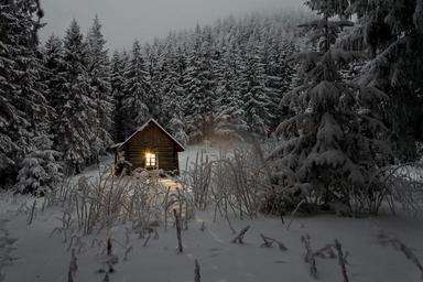 Keywords: cabin pine trees wilderness nature cottage rural winter house snow log cabin outdoor scenic
