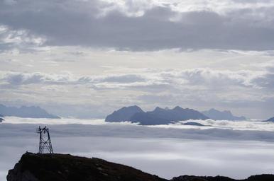 Keywords: cable car summit above the clouds sky landscape alpine mountains cold nature longing distant wide austria