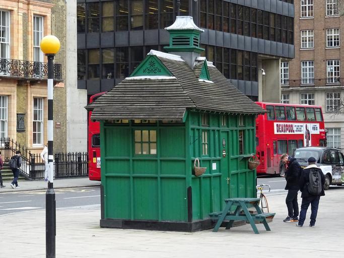 | Keywords: outdoor The Cabmen's Shelter Fund was established in London, England, in 1875 to run shelters for the drivers of hansom cabs and later hackney carriages (taxicabs).[1] By law, cab drivers could not leave the cab stand while their cab was parked there. This made it very difficult for them to obtain hot meals and could be unpleasant in bad weather. If they drove to a pub to buy food then they would have to pay somebody to look after their cab while they were inside, otherwise it was likely to be stolen. The Earl of Shaftesbury and other worthies therefore took it upon themselves to set up a charity to construct and run shelters at major cab stands. These shelters were small green huts, which were not allowed to be larger than a horse and cart, as they stood on the public highway. Between 1875 and 1914, 61 of these buildings were built around London. Most were staffed by an attendant who sold food and (non-alcoholic) drink to the cabbies and were provided with a kitchen in which the attendant could cook this food and also food provided by the cabbies themselves. The attendant was not generally paid, but was expected to make an income from these sales. The shelters were also provided with seats and tables and books and newspapers, most of them donated by the publishers or other benefactors. Most could accommodate ten to thirteen men. Gambling, drinking and swearing were strictly forbidden. Thirteen of the shelters still exist and are still run by the Cabmen's Shelter Fund.[2] All are now Grade II listed buildings. They are located at: Chelsea Embankment SW3 - close to junction with Albert Bridge, London Embankment Place WC2 - close to the Playhouse Theatre Grosvenor Gardens SW1 - to the west side of the north gardens Hanover Square, London W1 - on the north side of the central gardens Kensington Park Road W11 - outside numbers 8-10 Kensington Road W8 - close to the junction of Queen's Gate SW7 Pont Street SW1 - close to the junction of Sloane Street Russell Square WC1 - Western Corner (relocated to here from Leicester Square) St. George's Square, Pimlico SW1 - on the north side Temple Place WC2 - opposite side of the road from the Swissötel Howard Thurloe Place, Kensington SW7 - in the middle of the road opposite the Victoria and Albert Museum Warwick Avenue, London W9 - centre of the road, by Warwick Avenue tube station Wellington Place NW8 - near to Lord's Cricket Ground During annual Open House London Heritage Days, the public gets a chance to see inside some of the shelters, normally the exclusive reserve of cab drivers. The Cabmen's Shelter Fund was established in London, England, in 1875 to run shelters for the drivers of hansom cabs and later hackney carriages (taxicabs).[1] By law, cab drivers could not leave the cab stand while their cab was parked there. This made it very difficult for them to obtain hot meals and could be unpleasant in bad weather. If they drove to a pub to buy food then they would have to pay somebody to look after their cab while they were inside, otherwise it was likely to be stolen. The Earl of Shaftesbury and other worthies therefore took it upon themselves to set up a charity to construct and run shelters at major cab stands. These shelters were small green huts, which were not allowed to be larger than a horse and cart, as they stood on the public highway. Between 1875 and 1914, 61 of these buildings were built around London. Most were staffed by an attendant who sold food and (non-alcoholic) drink to the cabbies and were provided with a kitchen in which the attendant could cook this food and also food provided by the cabbies themselves. The attendant was not generally paid, but was expected to make an income from these sales. The shelters were also provided with seats and tables and books and newspapers, most of them donated by the publishers or other benefactors. Most could accommodate ten to thirteen men. Gambling, drinking and swearing were strictly forbidden. Thirteen of the shelters still exist and are still run by the Cabmen's Shelter Fund.[2] All are now Grade II listed buildings. They are located at: Chelsea Embankment SW3 - close to junction with Albert Bridge, London Embankment Place WC2 - close to the Playhouse Theatre Grosvenor Gardens SW1 - to the west side of the north gardens Hanover Square, London W1 - on the north side of the central gardens Kensington Park Road W11 - outside numbers 8-10 Kensington Road W8 - close to the junction of Queen's Gate SW7 Pont Street SW1 - close to the junction of Sloane Street Russell Square WC1 - Western Corner (relocated to here from Leicester Square) St. George's Square, Pimlico SW1 - on the north side Temple Place WC2 - opposite side of the road from the Swissötel Howard Thurloe Place, Kensington SW7 - in the middle of the road opposite the Victoria and Albert Museum Warwick Avenue, London W9 - centre of the road, by Warwick Avenue tube station Wellington Place NW8 - near to Lord's Cricket Ground During annual Open House London Heritage Days, the public gets a chance to see inside some of the shelters, normally the exclusive reserve of cab drivers. |