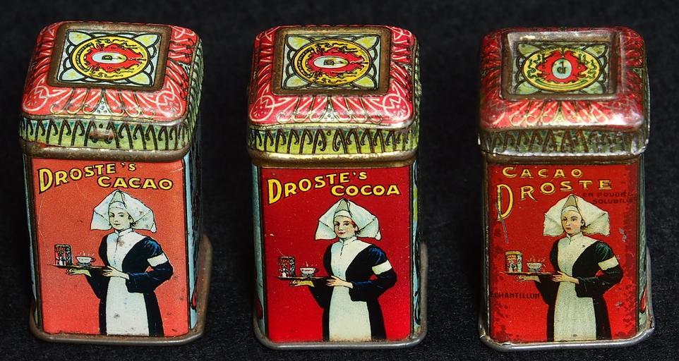 Keywords: cacao container box tin food package old product