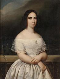 Keywords: Cäcilie von Schweden Großherzogin von Oldenburg by Theodor Hamacher.jpg Artwork Theodor Hamacher 1825 Düsseldorf - 1865 Breslau Cäcilie Großherzogin von Oldenburg geb Prinzessin von Schweden 1847 Oil on canvas cm 50 38 unknown http //www duesseldorfer-auktionshaus planetactive com/ other versions PD-old-100 DEFAULTSORT 1847; Cecilia of Sweden Images from Düsseldorfer Auktionshaus Theodor Hamacher 19th-century portrait paintings location missing Cecilia of Sweden Grand Duchess of Oldenburg 1840s dresses 1847 oil on canvas paintings Portrait 1847 portrait paintings from Germany 19th-century oil portraits of standing women at half length 19th-century oil portraits of standing women at three-quarter length Balustrades in portrait paintings Brooches in art Female hair fashion in art Females with white dresses in art Lace in art
