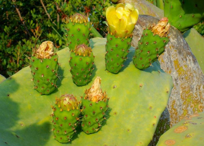 Keywords: cactus blossom bloom plant cactus flowers yellow bright cactus flower spur thorns prickly pear leaf cactus bloom leaf cactus cactus greenhouse