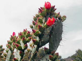 Keywords: cactus prickly pear quills flowers red wild flower flowering thorns