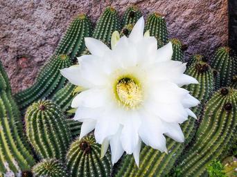 Keywords: cactus rhodolia rosea quills white flower