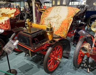 Keywords: Cadillac rear entrance touring automobile, 1904, made by Cadillac Motor Car Co., Detroit, 7-10 HP, 1 cylinder, gasoline engine - Luray Caverns Car and Carriage Museum - Luray, Virginia - DSC01213.jpg en Exhibit in the in the Luray Caverns Car and Carriage Museum Lurary Virginia USA 2015-07-11 11 28 22 own Daderot other versions cc-zero Automobiles in the Luray Caverns Car and Carriage Museum 1904 Cadillac automobiles