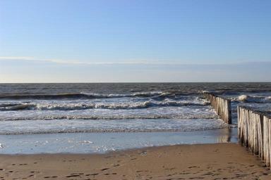 Keywords: cadzand-bad netherlands holland north sea beach summer july sky water landscape nature blue spacious holzbuhne breakwater distant traces