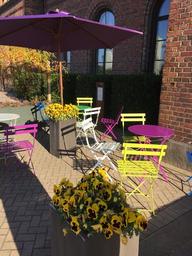 Keywords: café colors chairs yellow purple flowers beautiful garden flower solar summer sweden sea