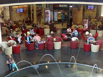 Keywords: cafe mall people shopping lifestyle coffee shop indoors elegant city weekend recreation consumers drink bucharest romania