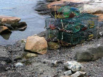 Keywords: cages lobster fishery water shore rocky fishing trap