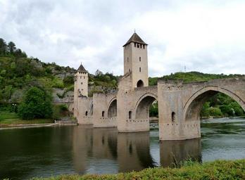 Keywords: cahors france bridge towers landmark historical stone architecture river water reflections nature outside mountains trees scenic country countryside rural summer spring