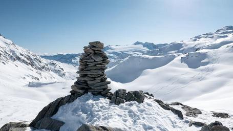 Keywords: cairn mountains winter snow waymarks switzerland ticino bedrettotal christallina cute signpost stone tower stones wide nature landscape