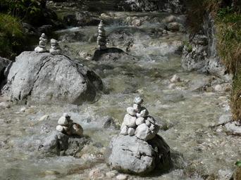 Keywords: cairn stones riverbed boulders tower nature