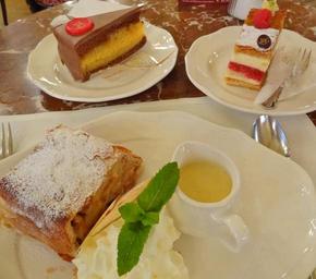 Keywords: cake chocolate apple dessert sweet cream plate slice icing pastry bakery indulgence eating celebration temptation treat baked sugar