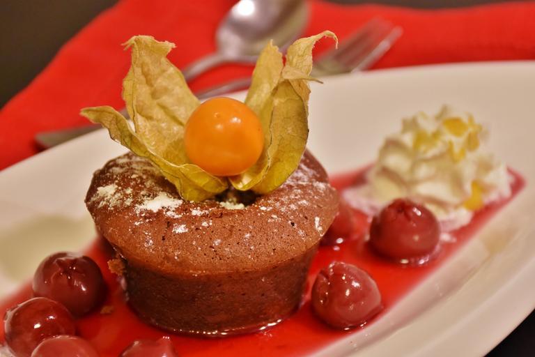 Keywords: cake tart dessert christmas christmas dessert sweet delicious bake confectionery treat small calories muffins delicacy brown schokoladenmuffins small cakes chocolate cream whipped cream cherries rum rum cherry white red