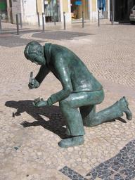 Keywords: Calceteiro1.JPG pt Monumento ao calceteiro em frente à igreja de São Nicolau Baixa Lisboa Portugal Own CorreiaPM 05/07/2008 Statues of kneeling men Challenges to physical balance Statues in Lisbon
