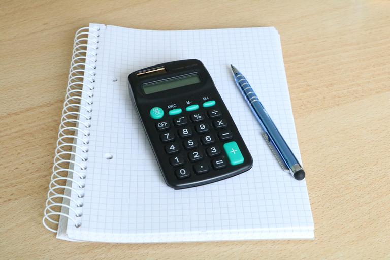Keywords: calculator block pen solar calculator white business office work workplace desk