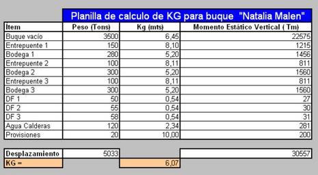 MAKE A MEME View Large Image CalculoKG.PNG spread sheet for KG calculation transversal stability Own 2007-01 Claudio Elias Naval architecture