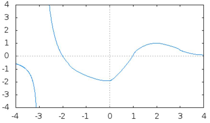 | Keywords: Calculus graphing exercise 1.png en Function satisfying the following conditions <math>f 1 f -2 0 \; \lim_ x\to \infty f x \lim_ x\to -\infty f x 0 \; \mbox vertical asymptote at x -3 \; f' x >0 \mbox on 0 2 </math> <math> f' x <0 \mbox on -\infty -3 \cup -3 0 \cup 2 \infty \; f x >0 \mbox on -3 1 \cup 3 \infty \; f x <0 \mbox on -\infty -3 \cup 1 3 </math> My own work Paul Breen 2011-05-20 Cc-zero Functions XY plots | ||||