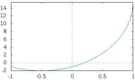 | Keywords: Calculus graphing exercise 2.png en Function that satisfies the following conditions <br/> <math>f \mbox has domain -1 1 \; f -1 -1 \; f -\frac 1 2 -2 \; f' -\frac 1 2 0 \; f x >0 \mbox on -1 1 </math> My own work Paul Breen 2011-05-21 Cc-zero Convexity functions Continuity functions XY plots |