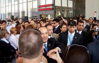 | Keywords: Calderon Expo 2008.jpg en President of Mexico Felipe Calderón outside the Mexican Pavilion during the National Day of Mexico in Expo 2008 Zaragoza es El Presidente de México Felipe Calderón en el exterior del Pabellón de México durante el Día Nacional dedicado a este país en la Expo 2008 Zaragoza own Édgar Vargas autorizado a César Corona 2008-06-14 Expo 2008 Felipe Calderón |