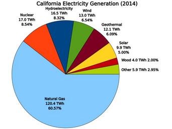 | Keywords: California Electricity Sources.svg translate yes en California electricity generation by source 2014 data from US EIA Data from US Energy Information Administration website http //www eia gov/electricity/state/California/ 2016-07-25 own Delphi234 other versions cc-zero Electric power generation Energy in California |