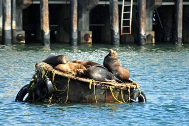 Keywords: california sea lions buoy harbor bay water outside