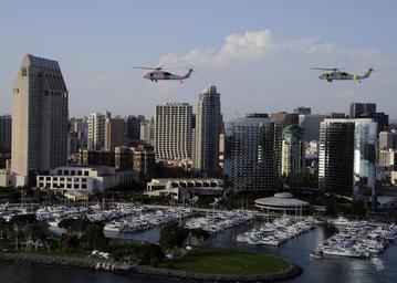 | Keywords: California Wildfires 2012 120817-N-MF277-508.jpg en U S Navy MH-60S Seahawk helicopters with Helicopter Sea Combat Squadron HSC 3 and HSC-21 fly over San Diego after conducting an aerial firefighting mission Aug 17 2012 HSC-3 and HSC-21 assisted the California Department of Forestry and Fire Protection by providing aircrews flying specially equipped Seahawks to conduct aerial water drops over several wildfires in eastern San Diego County U S Navy photo by Mass Communication Specialist 2nd Class Sebastian McCormack/Released 2012-08-17 Petty Officer 2nd Class Sebastian McCormack https //www dvidshub net/image/655908 120817-N-MF277-508 2012-08-31 03 33 SAN DIEGO CA US PD-USGov-Military-Navy MH-60S Seahawk Images from DoD uploaded by Fæ |