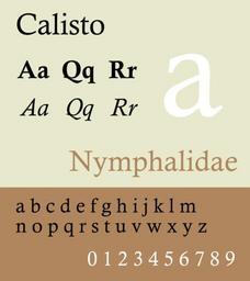 Keywords: Calisto.svg en Typeface sample of Calisto by Monotype own Inductiveload 2009-11-06 SVG typeface specimen samples