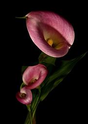 Keywords: calla three trio flower plant nature black green pink macro close-up