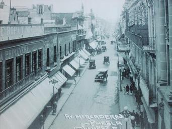 | Keywords: Calle de mercaderes.JPG en Mercaderes St circa 1910 es Calle de Mercaderes hoy 2 Norte 100 hacia 1910 own Gustavo Velarde Copyright just expired Pd-old History of Puebla city Awnings Automobiles in Mexico Balconies in Mexico Buildings in Puebla city Streets in Puebla city Black and white photographs of Mexico Source own |