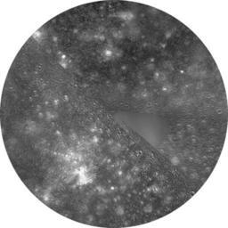 | Keywords: Callisto north pole.jpg en Prepared on behalf of the Planetary Geology and Geophysics Program Solar System Exploration Division Office of Space Science National Aeronautics and Space Administration This image was extracted from the i2770 PDF at the resolution that it was stored within that file It covers latitudes from +57 to +90 with the other latitudes covered by separate files This global map base uses the best image quality and moderate resolution coverage supplied by Galileo SSI and Voyager 1 and 2 Batson 1987; Becker and others 1998; Becker and others 1999; Becker and others 2001 The digital map was produced using Integrated Software for Imagers and Spectrometers ISIS Eliason 1997; Gaddis and others 1997; Torson and Becker 1997 The individual images were radiometrically calibrated and photometrically normalized using a Lunar-Lambert function with empirically derived values McEwen 1991; Kirk and others 2000 A linear correction based on the statistics of all overlapping areas was then applied to minimize image brightness variations The image data were selected on the basis of overall image quality reasonable original input resolution from 20 km/pixel for gap fill to as much as 150 m/pixel and availability of moderate emission/incidence angles for topography Although consistency was achieved where possible different filters were included for global image coverage as necessary clear for Voyager 1 and 2; clear and green 559 nm for Galileo SSI Individual images were projected to a Sinusoidal Equal-Area projection at an image resolution of 1 0 kilometer/pixel The final constructed Sinusoidal projection mosaic was then reprojected to the Mercator and Polar Stereographic projections included on this sheet The final mosaic was enhanced using commercial software http //geopubs wr usgs gov/i-map/i2770/ USGS 2002-05-01 Maps of Callisto PD-USGov |